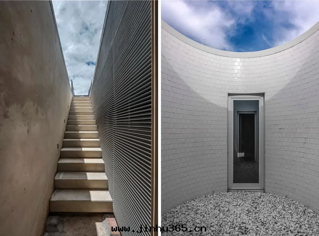 The whole villa is mainly composed of rocks and wood. The opening is designed as a downward concave spherical structure, which perfectly dissolves in the surrounding scene and opens up a unique underground living space.