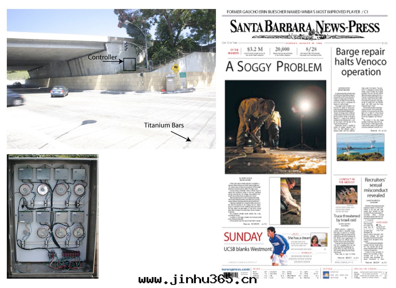 美(měi)國(guó)加利福尼亞圣巴巴拉市(shì)卡(kǎ)斯蒂略街(jiē)道(dào)立交,是(shì)一(yī)个(gè)交通(tòng)要(yào)道(dào),每天(tiān)过(guò)往的車輛超达2万(wàn)輛。但路(lù)口(kǒu)长(cháng)期(qī)被(bèi)水(shuǐ)浸泡,地(dì)下(xià)水(shuǐ)從地(dì)下(xià)湧出(chū),水(shuǐ)头(tóu)达到8厘(lí)米(mǐ),交通(tòng)事(shì)故不(bù)断,每年(nián)花(huā)在(zài)訴讼、賠償的資金(jīn)不(bù)下(xià)數百(bǎi)万(wàn)美(měi)元(yuán)。政(zhèng)府在(zài)多(duō)次(cì)治理(lǐ)無效後(hòu),決定(dìng)重(zhòng)建。估算要(yào)2000——3000万(wàn)美(měi)元(yuán)。決定(dìng)在(zài)2012年(nián)开工。該州州報發(fà)表(biǎo)文(wén)章(zhāng)呼籲社会(huì)共(gòng)同(tóng)尋找(zhǎo)解(jiě)決的辦(bàn)法(fǎ)。2004年(nián)EPT公(gōng)司接受了(le)这(zhè)个(gè)項目。安(ān)裝(zhuāng)了(le)EPT系(xì)統,僅僅五(wǔ)天(tiān),七(qī)万(wàn)平方(fāng)英尺(chǐ)的地(dì)面(miàn)就(jiù)停止滲水(shuǐ),紙(zhǐ)巾(jīn)已經(jīng)十(shí)年(nián)了(le),路(lù)面(miàn)一(yī)直(zhí)保持(chí)干(gàn)燥狀态,此(cǐ)項工程僅花(huā)費了(le)幾(jǐ)百(bǎi)万(wàn)美(měi)元(yuán),工程施工僅用(yòng)了(le)一(yī)个(gè)多(duō)月(yuè)的时(shí)間(jiān)。