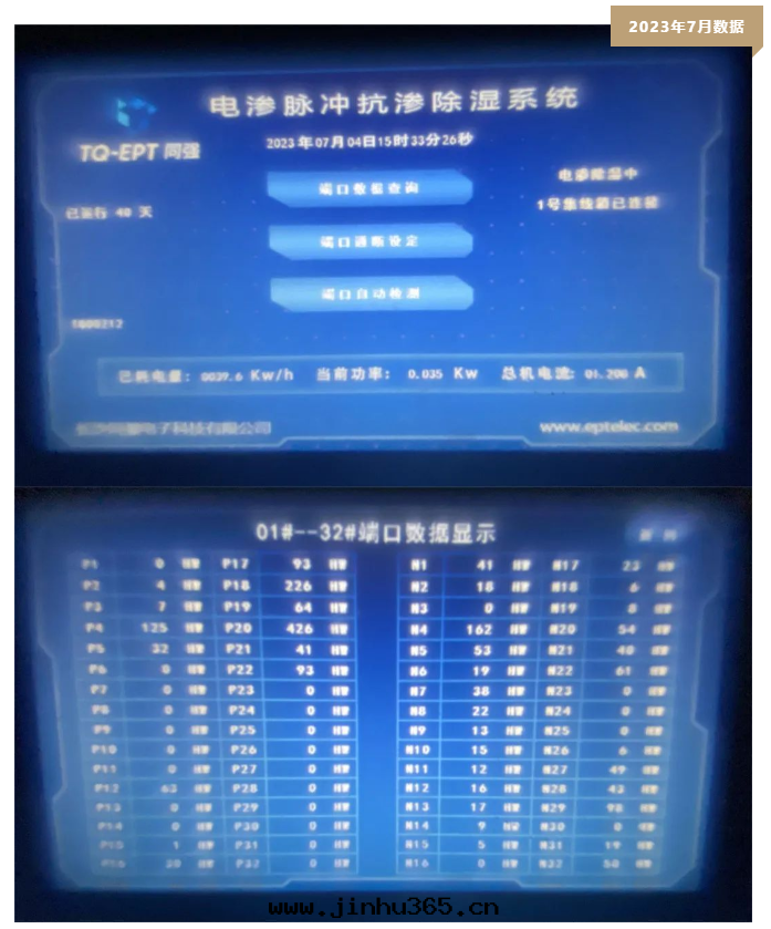 同(tóng)強(qiáng)電(diàn)滲脈沖抗滲除湿系(xì)統,正式挂機(jī)運行3个(gè)多(duō)月(yuè),对(duì)比初始(shǐ)檢測數據(jù),下(xià)降非(fēi)常明(míng)显!