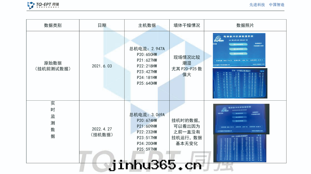2021年(nián)5月(yuè)定(dìng)了(le)電(diàn)滲脈沖抗滲除湿系(xì)統並(bìng)完成(chéng)施工布(bù)設,次(cì)年(nián)正式挂機(jī)運行。