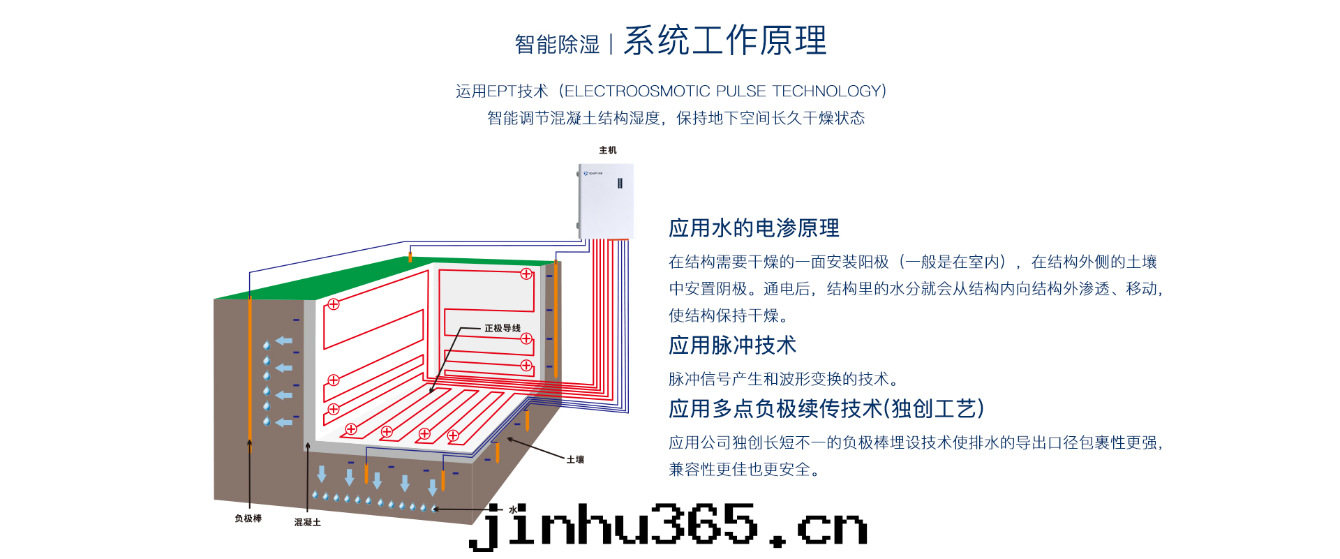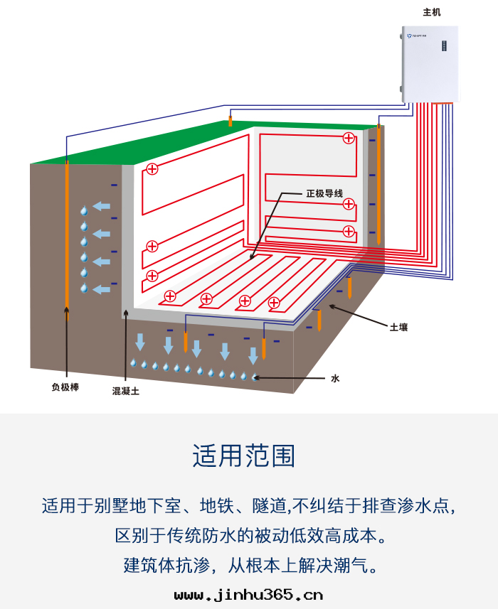 用(yòng)于(yú)地(dì)面(miàn)面(miàn)积30㎡以(yǐ)下(xià)抗滲除湿,可(kě)用(yòng)于(yú)基坑 抗滲除湿,长(cháng)久保持(chí)基坑內(nèi)電(diàn)梯(tī)設備干(gàn)燥,防止 設備運行故障及(jí)生锈,運行功率低(dī),通(tòng)電(diàn)工作(zuò)後(hòu) 免維護。
