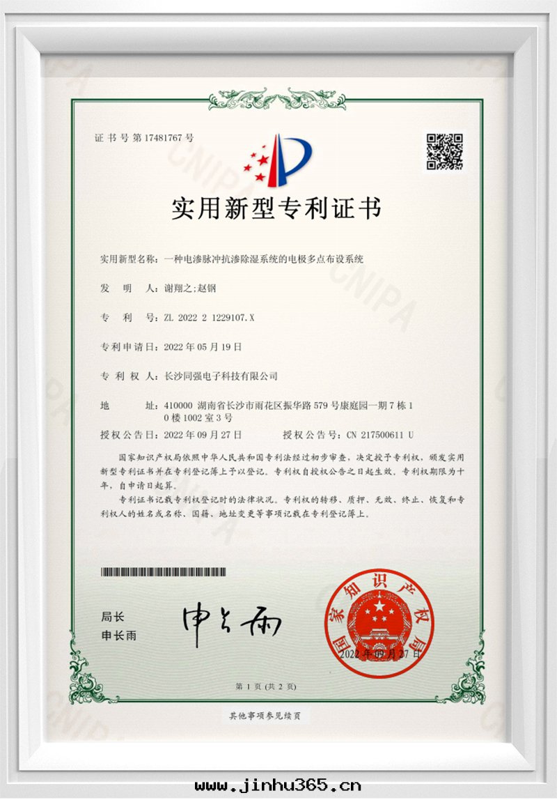 长(cháng)沙(shā)同(tóng)強(qiáng)電(diàn)子科技有(yǒu)限公(gōng)司(簡稱:TQ-EPT同(tóng)強(qiáng)科技)于(yú)2014年(nián)2月(yuè)正式成(chéng)立,注册(cè)資本(běn)1000万(wàn)。公(gōng)司位(wèi)于(yú)长(cháng)沙(shā)創新(xīn)設計(jì)産業園(yuán),是(shì)一(yī)家集研發(fà)-生産-國(guó)內(nèi)銷售-出(chū)口(kǒu)-服務(wù)于(yú)一(yī)體(tǐ)的科技型公(gōng)司。目前(qián),公(gōng)司已取(qǔ)得多(duō)項國(guó)家發(fà)明(míng)专利、國(guó)家高(gāo)新(xīn)技術(shù)企業認定(dìng)、歐盟CE認證以(yǐ)及(jí)湖(hú)南(nán)省(shěng)政(zhèng)府科技型中(zhōng)小企業資質(zhì)。國(guó)家建筑行業标(biāo)準CECS電(diàn)滲脈沖技術(shù)主(zhǔ)編單位(wèi)。
