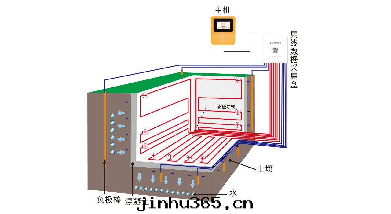 Install the same strong electroosmotic pulse anti-seepage dehumidification system, the principle of the system is simply through the indoor host controller, between the positive pole of the indoor wall and ground layout and the negative pole of the outdoor soil to produce a specific frequency of pulse, the water molecules oriented arrangement to guide to the outdoor. Of course, due to the initial application of this technology is in the military underground engineering, so it is also used in the field of basement moisture-proof when it is transformed into civilian. In 2011, China began to promote this technology in the civilian field.