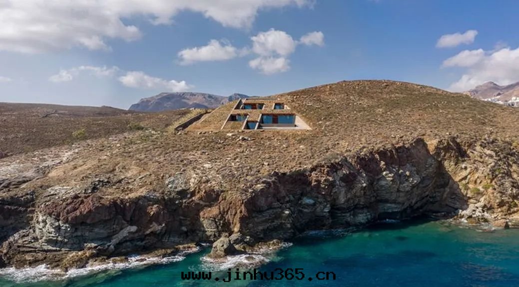 Ncaved is located on a small hidden rock Bay in Greece. In order to ensure a wide view and create a shelter where the north wind prevails, the design team chose to drill holes on the slope instead of arranging the building space on the ground.