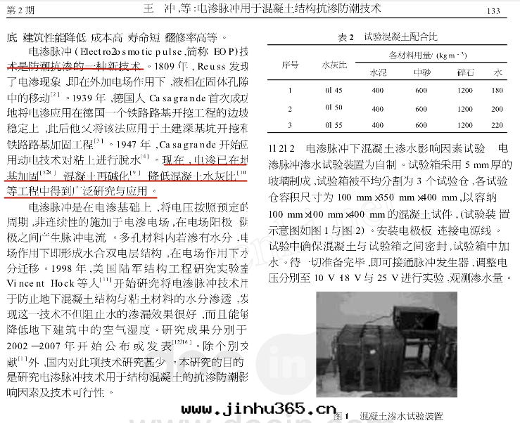Research and experiment on impermeability and dampproof technology of concrete structure by electroosmosis pulse