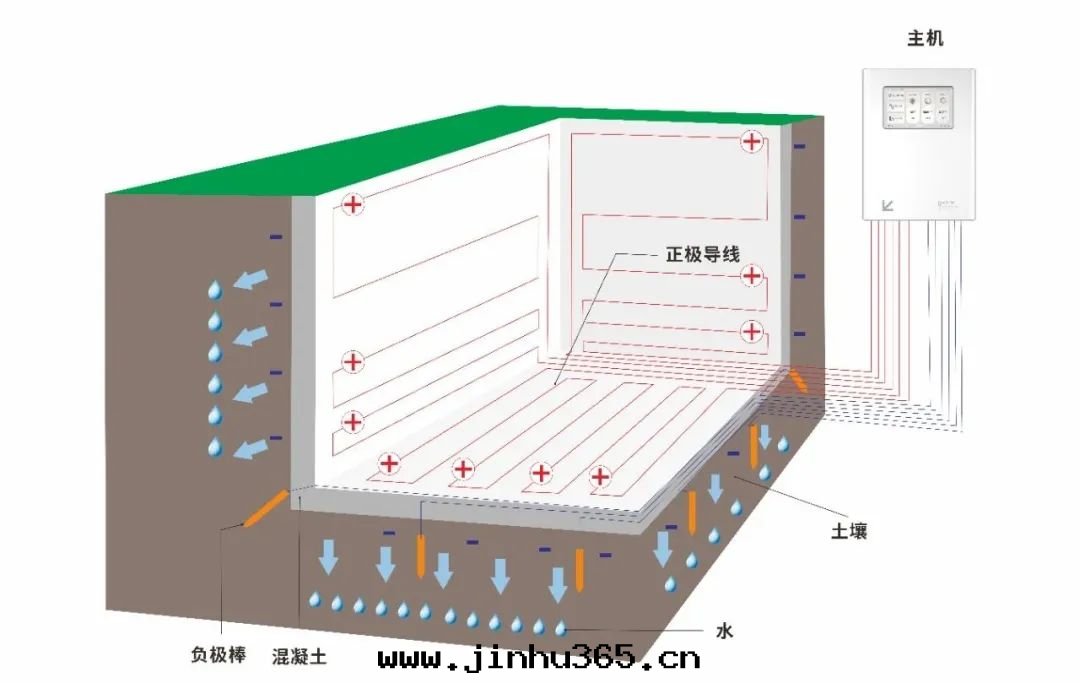 Different from dehumidifier and traditional waterproof way, one can only plug the leak, the other can only solve the problem of air tide, basement wet reason is 70% from the structure wet, electric penetration is through solving the moisture content of the structure, intelligent regulation, change the direction of the movement of water molecules, so that the basement to keep dry and comfortable state.
