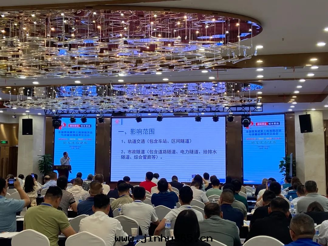 Professor Liu Penghui (professoral-level Senior engineer) from China Academy of Building Science shared the keynote report "Anti-floating Reinforcement and seepage Treatment of Underground Space of Existing Buildings" at the meeting. In particular, the application of electroosmotic dehumidification technology in underground space was mentioned, and the products of our company were taken as an example to explain the electroosmotic pulse anti-osmotic dehumidification system and its operating principle in detail to the delegates.