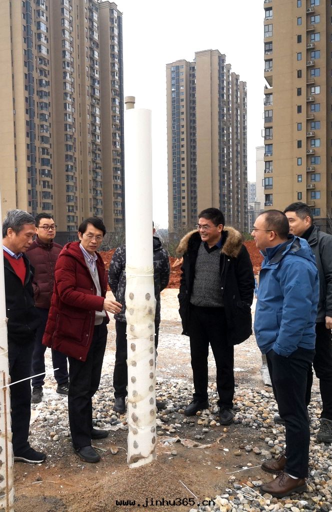 Then, a group of people went to the electroosmotic pulse dam three-dimensional flood mitigation model base construction site for field research.