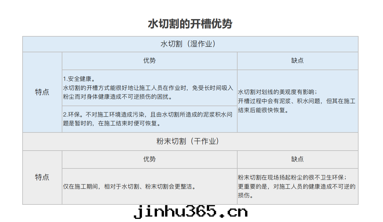 在(zài)施工作(zuò)業的过(guò)程中(zhōng),开槽是(shì)必不(bù)可(kě)少(shǎo)的一(yī)环(huán),开槽方(fāng)式分干(gàn)/湿作(zuò)業两(liǎng)种: