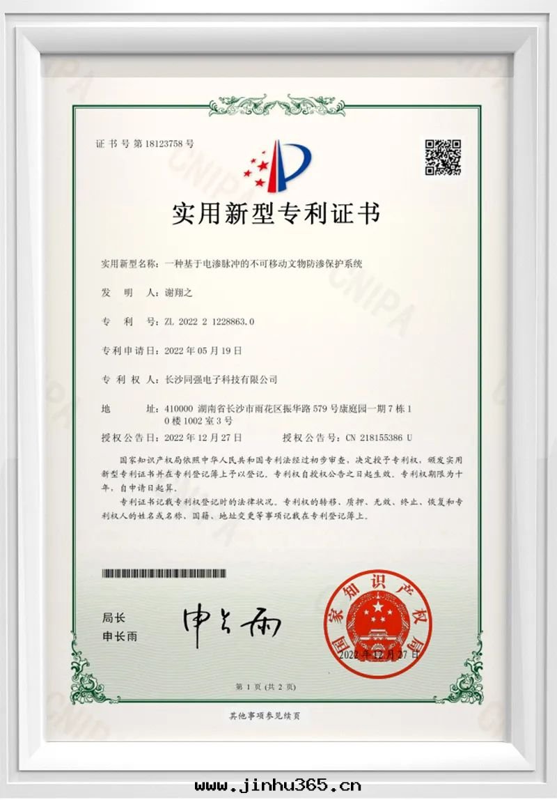 並(bìng)且(qiě)同(tóng)強(qiáng)科技還(huán)研發(fà)了(le) [ ZL202221228863.0一(yī)种基于(yú)電(diàn)滲脈沖的不(bù)可(kě)移動(dòng)文(wén)物(wù)防滲保護系(xì)統 ] 國(guó)家防滲专利技術(shù),以(yǐ)此(cǐ)来(lái)保護古建筑。