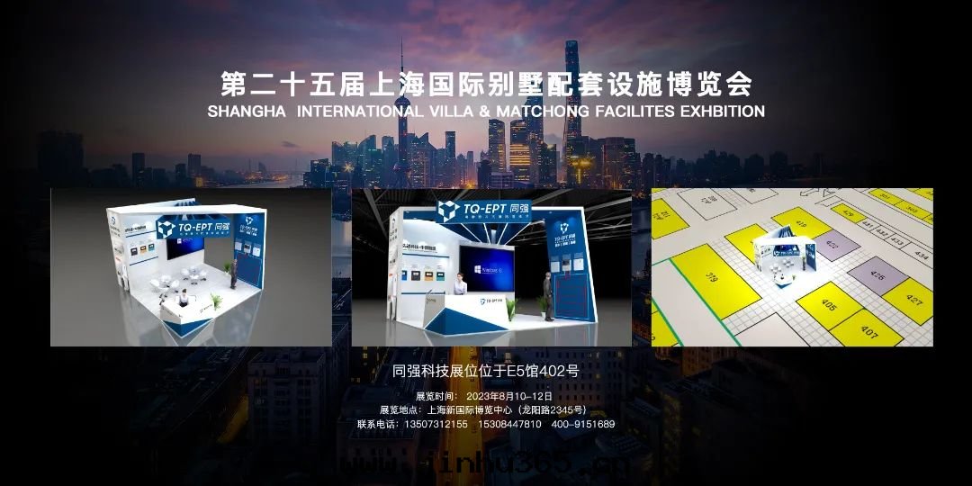 TQ-EPT同(tóng)強(qiáng)科技将于(yú)2023年(nián)8月(yuè)10日(rì)-12日(rì),參加上(shàng)海國(guó)際别墅配套(tào)設施博覽会(huì),上(shàng)海新(xīn)國(guó)際博覽中(zhōng)心(xīn)E5館(guǎn)402展(zhǎn)位(wèi),盛情(qíng)邀請您的光(guāng)臨!