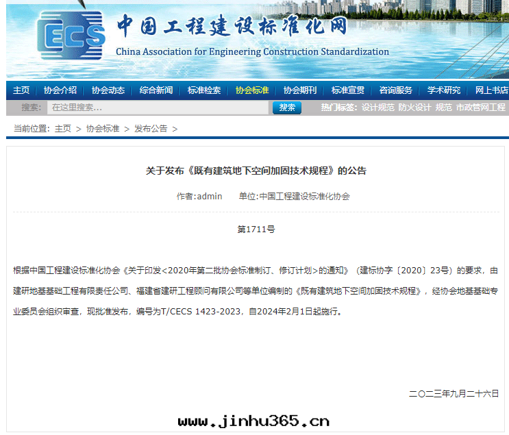 經(jīng)过(guò)长(cháng)达三(sān)年(nián)的努力,我(wǒ)司參與(yǔ)編制的《既有(yǒu)建筑地(dì)下(xià)空(kōng)間(jiān)加固技術(shù)规程》成(chéng)功通(tòng)过(guò)CECS認證,並(bìng)已于(yú)2024年(nián)2月(yuè)1日(rì)正式發(fà)布(bù)實(shí)施。