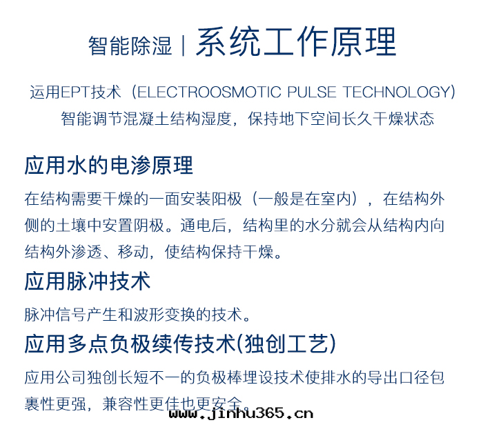 用(yòng)于(yú)地(dì)面(miàn)面(miàn)积30㎡以(yǐ)下(xià)抗滲除湿,可(kě)用(yòng)于(yú)基坑 抗滲除湿,长(cháng)久保持(chí)基坑內(nèi)電(diàn)梯(tī)設備干(gàn)燥,防止 設備運行故障及(jí)生锈,運行功率低(dī),通(tòng)電(diàn)工作(zuò)後(hòu) 免維護。